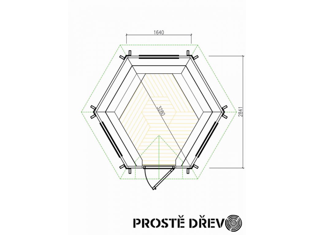 - dveře se šestihranným oknem s dvojitým zasklením, dřevěnou klikou a zámkem