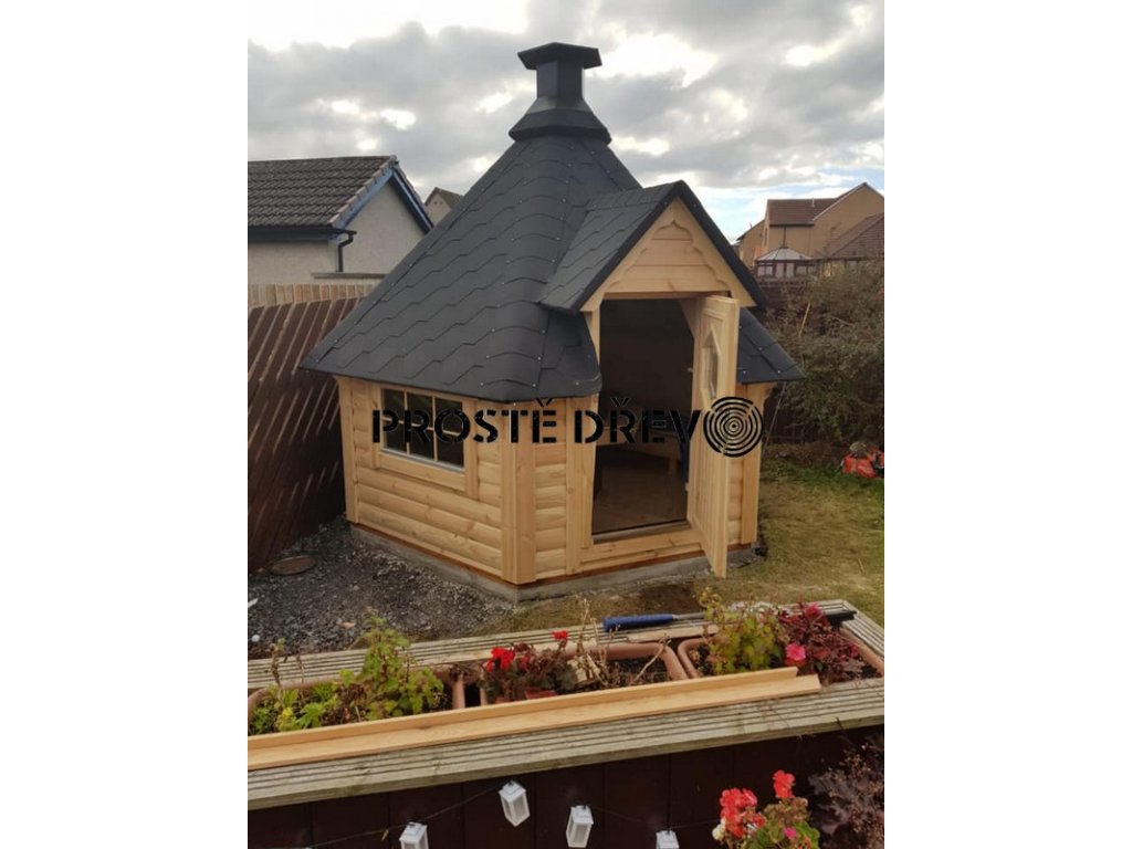 Malá klasická finská kota 7 m², která je určena pro 10-12 osob, takže pro rodinné nebo párové užití, kdy můžete pozvat i přátele, je skvělou volbou pro zpestření Vašeho života a zábavu s Vašimi přáteli. Zažijte tak ten nejlepší kulinářský zážitek, poslouchejte praskání dřeva, pobavte se s rodinou a přáteli nebo v soukromí se svým protějškem. Poslouchejte Vaší oblíbenou hudbu, degustujte přímo z grilu, zahrajte si hry, zkrátka se bavte, zažijte to!