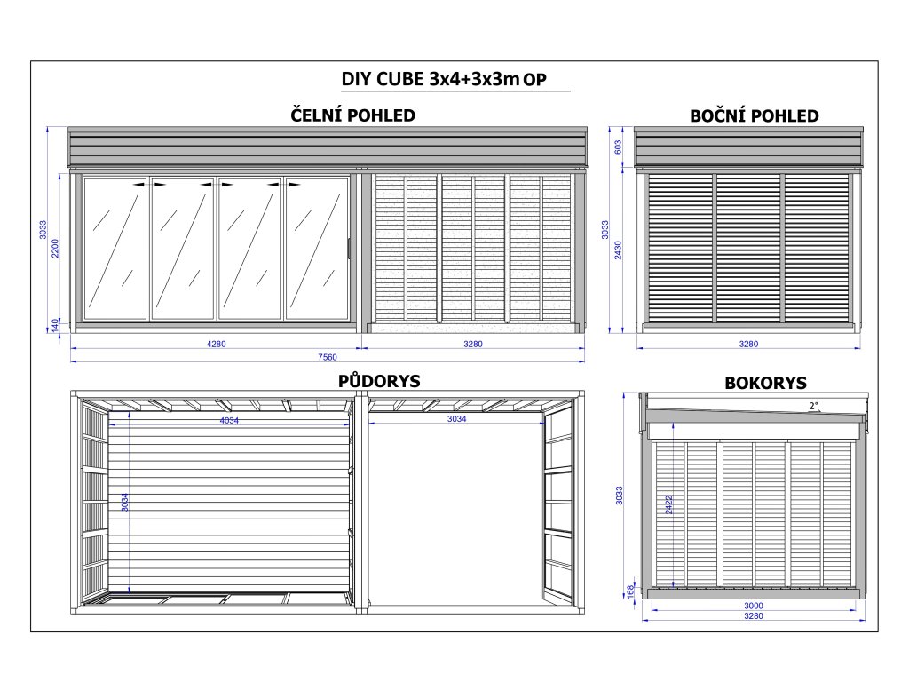 Zahradní multifunkční domek DIY Cube 3x4+3x3 OP