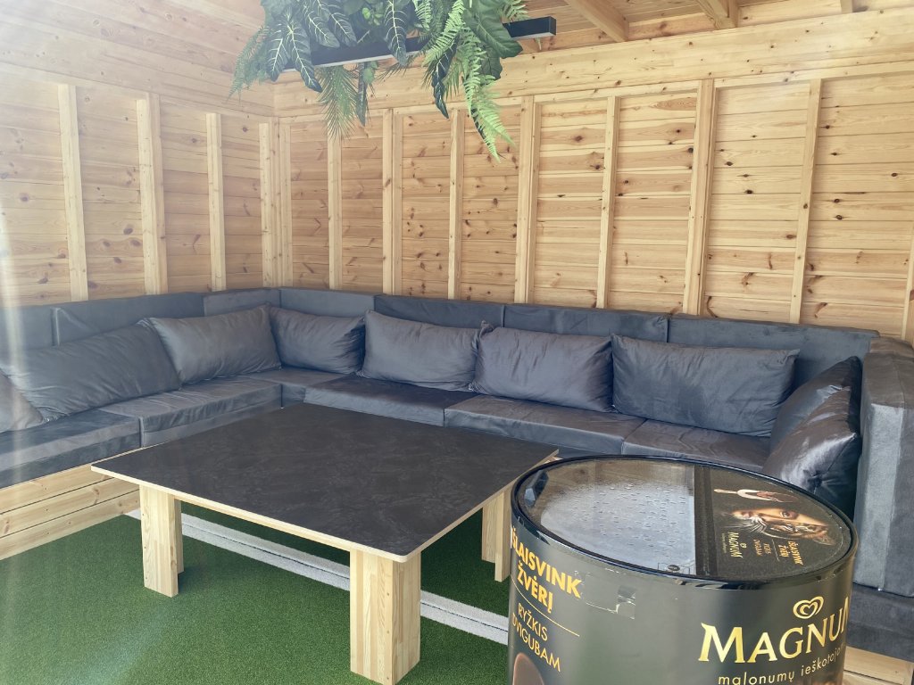 ▪ Zvenku: 28 mm borovicové obložení (+45x95 rám)