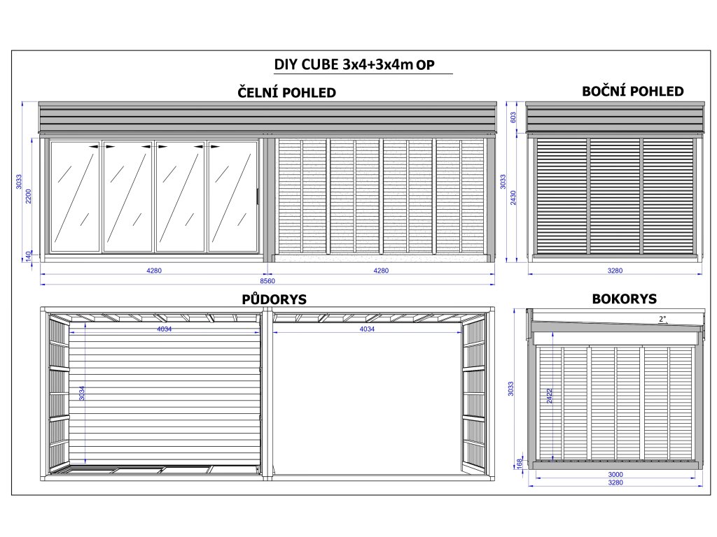 Zahradní multifunkční domek DIY Cube 3x4+3x4 OP